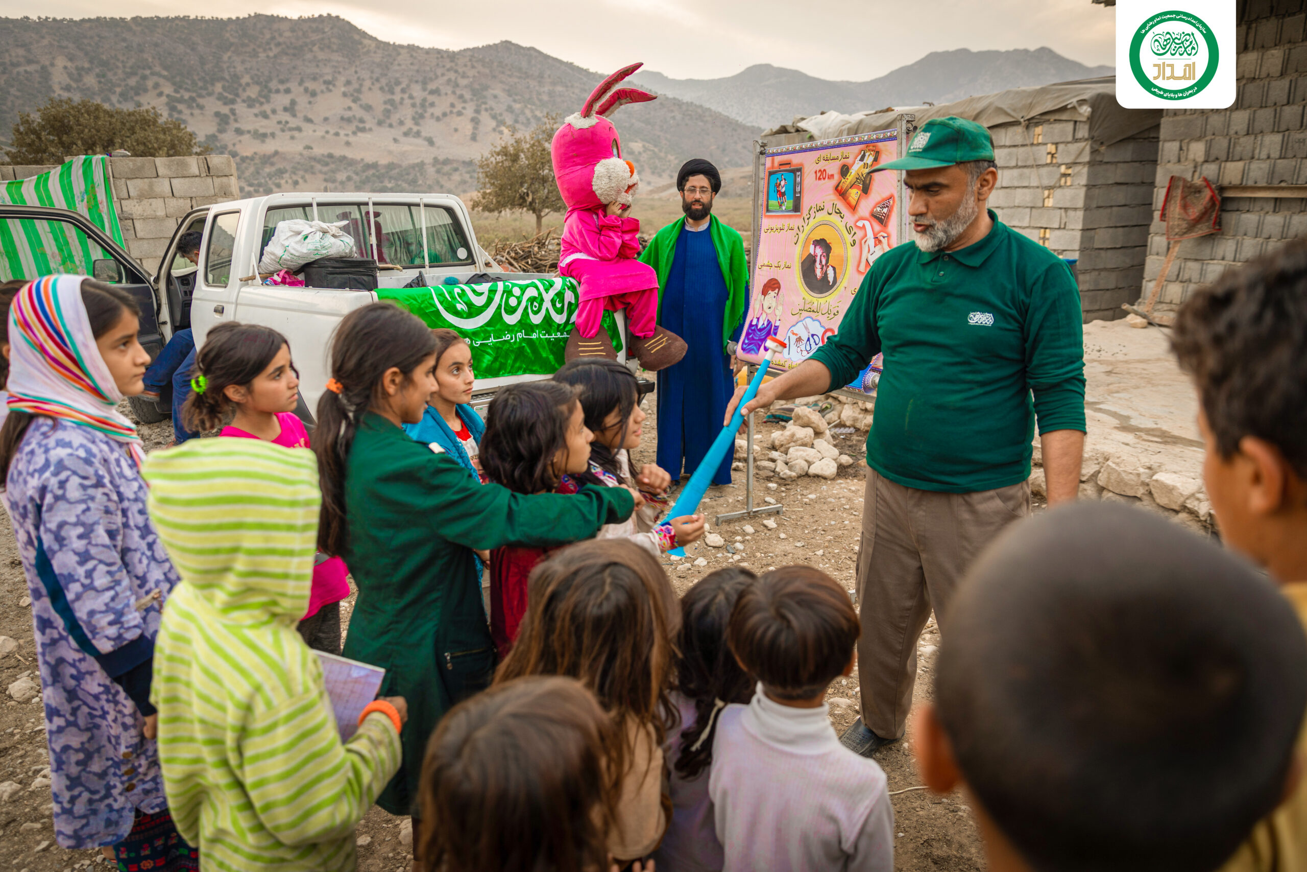 و از آنجایی که مردم زلزلهزده علاوه بر نیازهای زیستی(خوراک و پوشاک و مسکن) به تقویت روحیه و توان روحی بیشتری احتیاج دارند؛جمعیت امامرضاییها با اقدامات خیرخواهانهی فرهنگیان و هنرمندان برای شاداب سازی و تقویت روحیه و سرزندگی و نشاط کودکان، به مناطق صعب العبور رفته و با اجرای نمایشهای عروسکی و برنامههای تفریحی و سرگرمی در جهت زدودن گرد غم کودکان برآمدهاند.