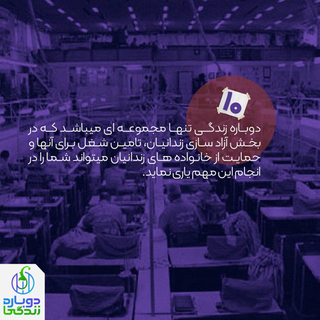 دوباره زندگی تنها مجموعه ای میباشد که در بخش آزاد سازی زندانیان، تامین شغل برای آنها و حمایت از خانواده های زندانیان میتواند شما را در انجام این مهم یاری نماید.