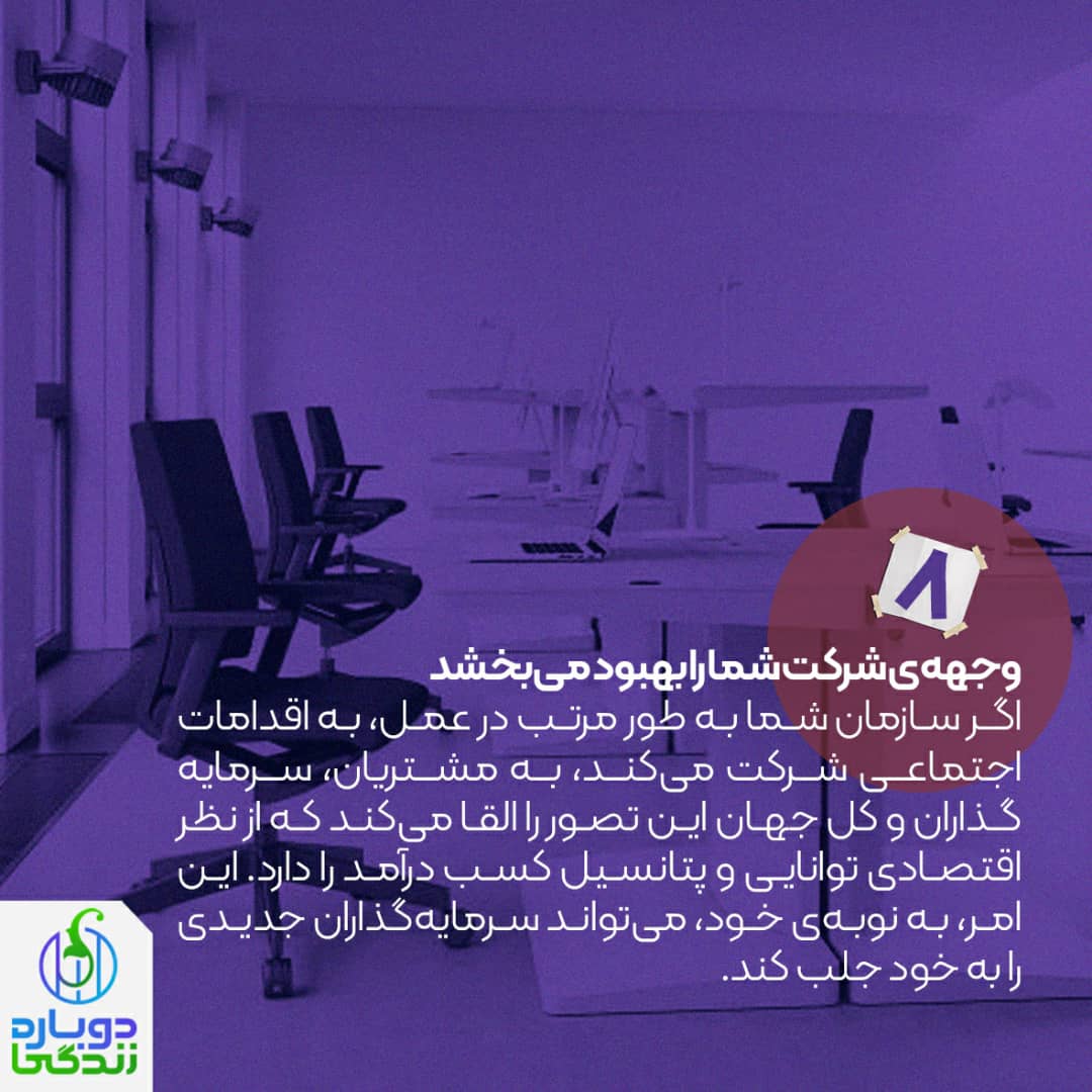 امروزه، بیشتر مشتریان اتفاقنظر دارند بر اینکه مسئولیت اجتماعی شرکت، هنگام خرید یا معامله، از معیارهای اصلی محسوب میشود و سازمان شما میتواند از این موضوع برای تبلیغ در موقعیتهای تجاری و بازاریابی خود نیز استفاده کند.
